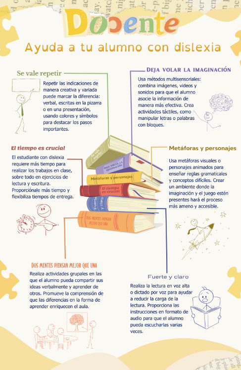 Para el video sobre técnicas para estudiantes con dislexia en el salón de clases, se sugiere proyectarlo en un espacio amplio para que sea visible en gran formato y capte la atención. Si la proyección no es posible, se puede optar por mostrarlo directamente en un dispositivo.